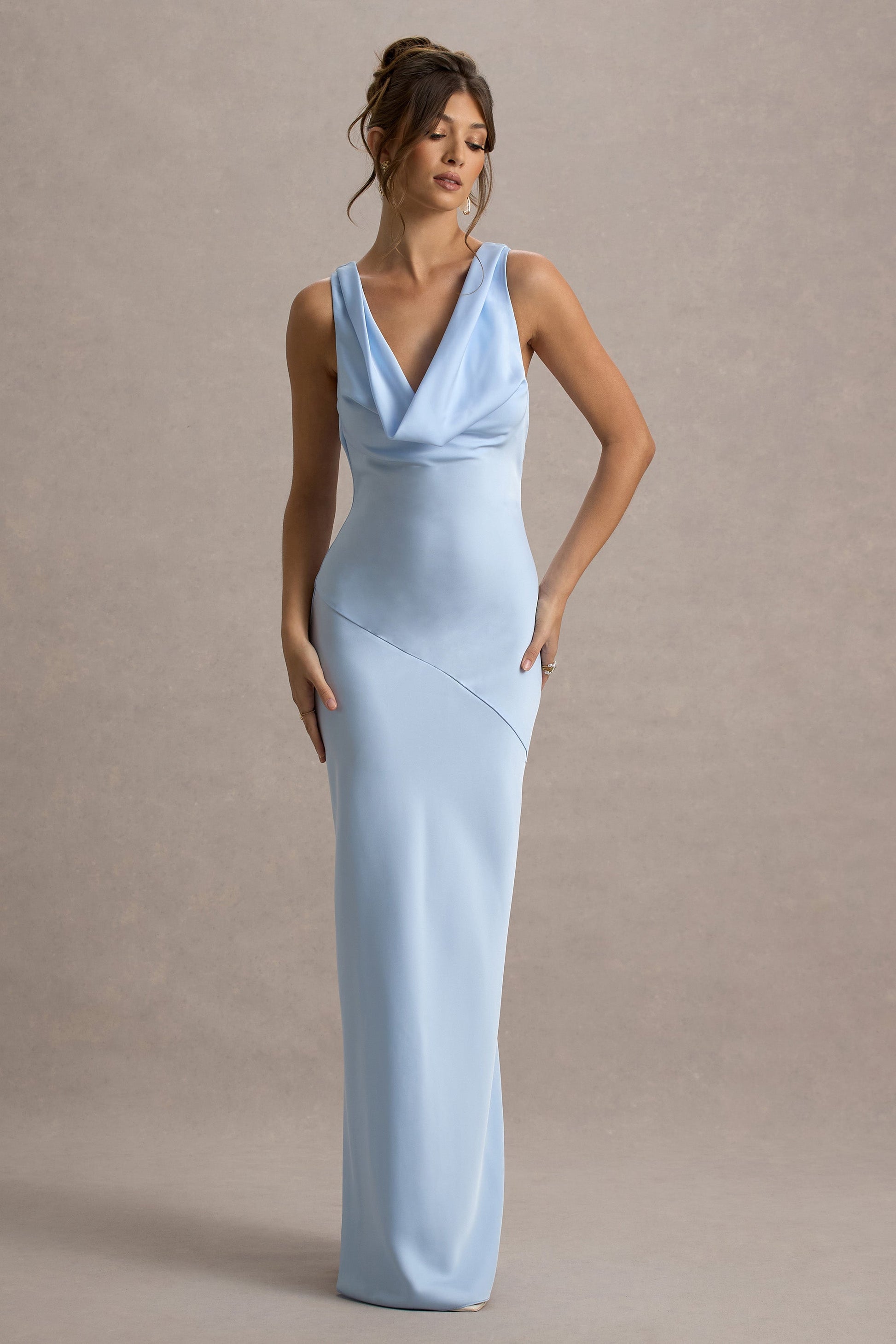 Alesso | Powder Blue Satin Cowl-Neck Slip-Maxi Dress