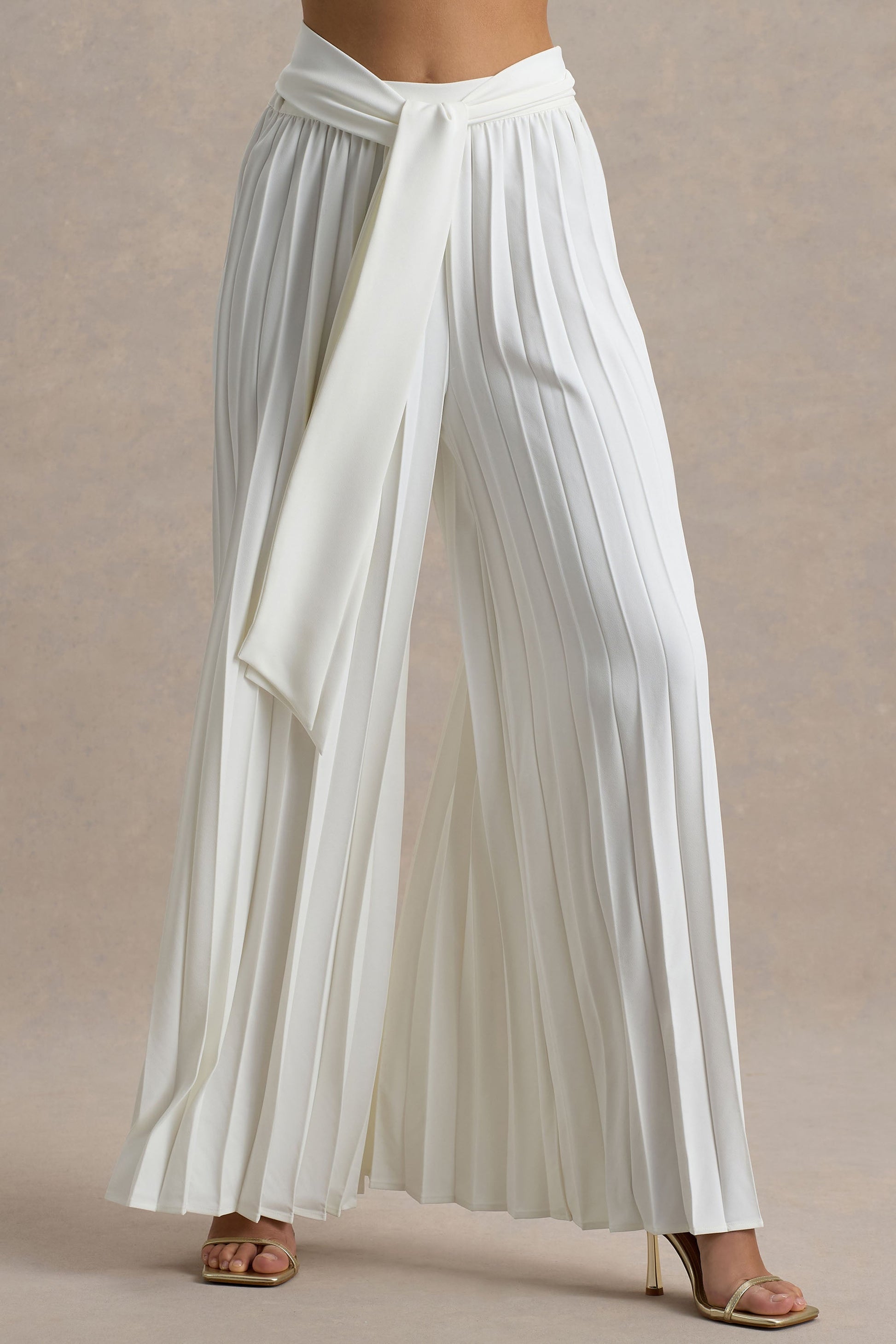 Eclipse | Cream Pleated Wide-Leg Trousers