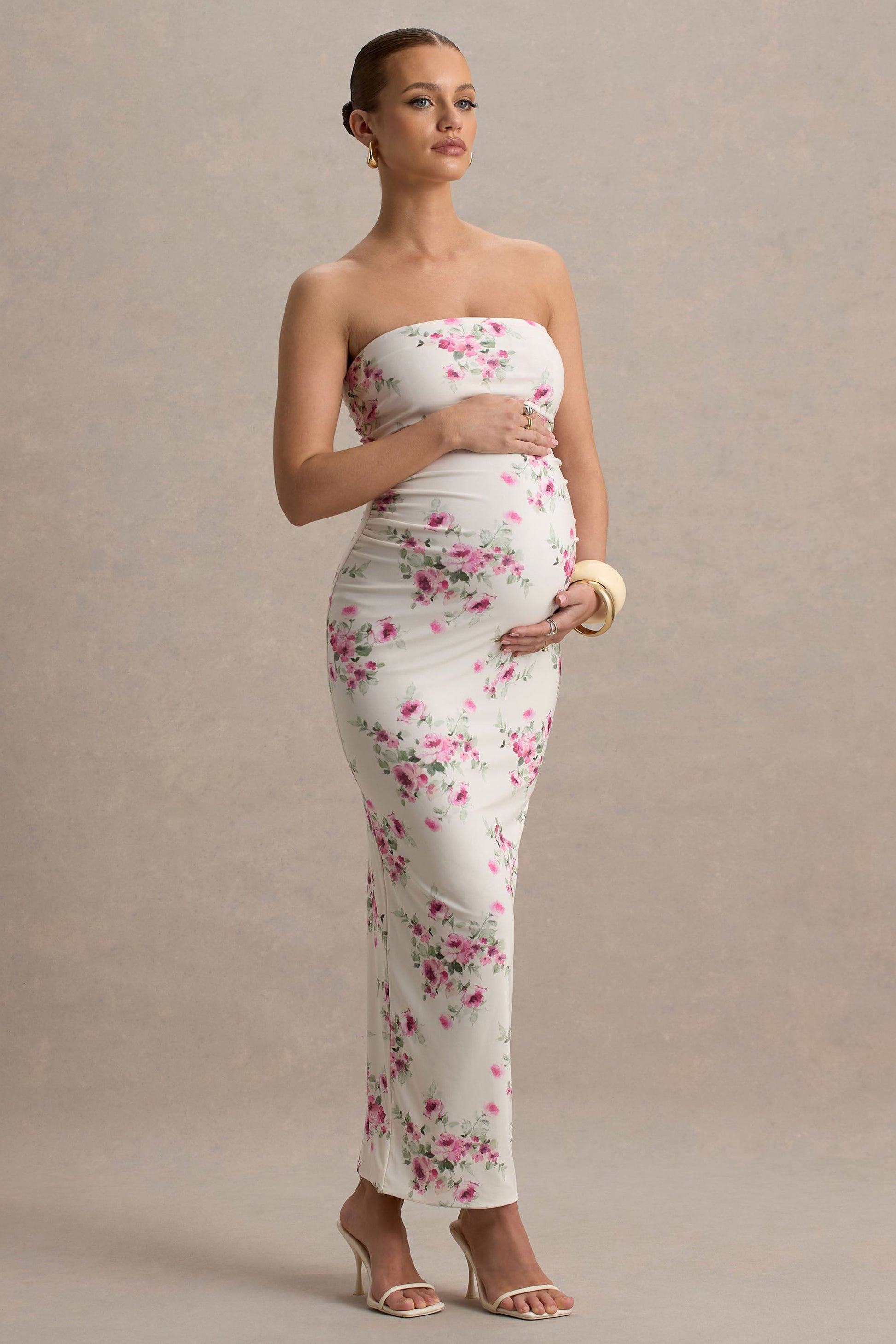 Juniper | Cream Floral Strapless Maternity Maxi Dress