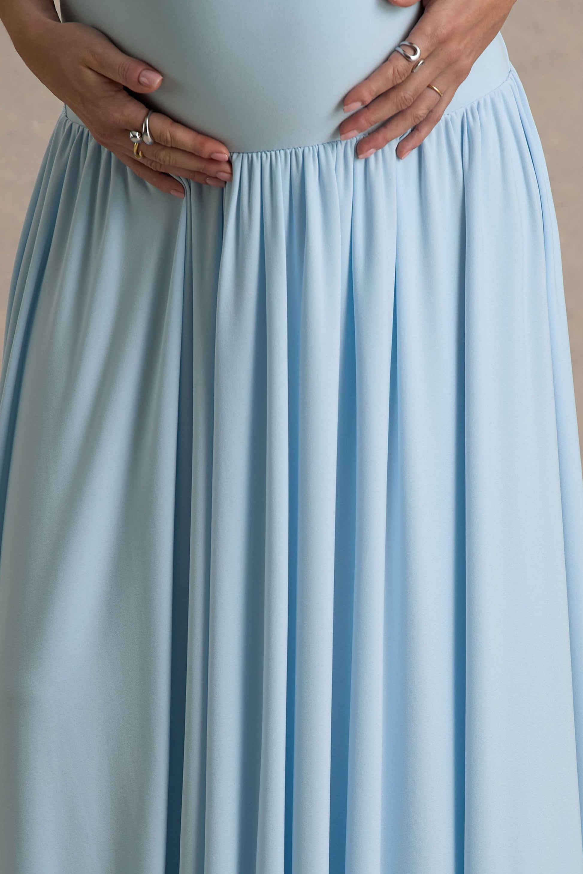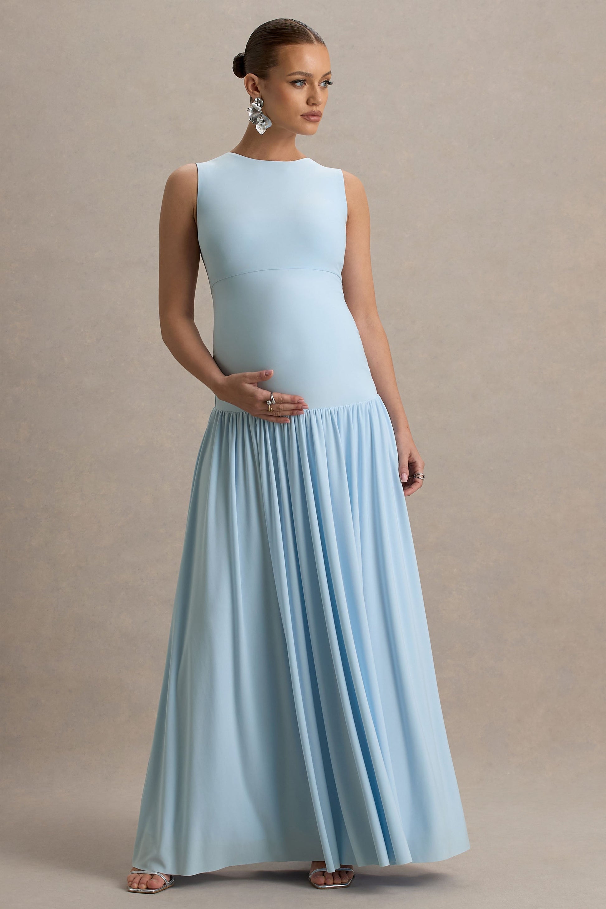 Outline | Powder Blue Crew-Neck Maternity Maxi Dress With Pleated Skirt