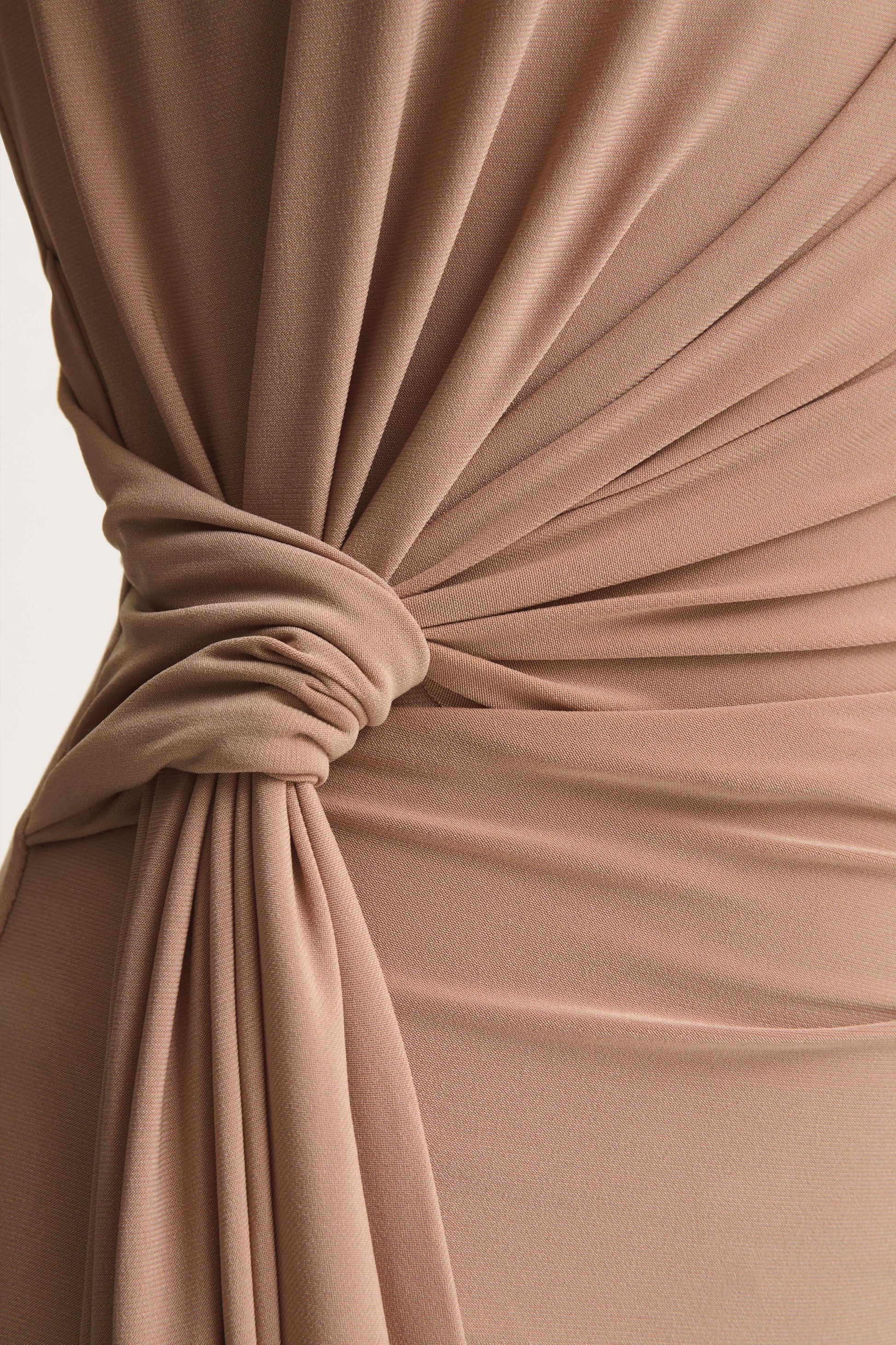 Meet Solene, the dress that demands attention with its sultry sophistication and timeless glamour. Crafted from our signature premium stretch jersey, this maxi-length beauty comes in a rich brown tone that hug your curves to perfection. Featuring a sleek high neckline for understated elegance, Solene turns heads with its statement twist knot and cascading sash detail that cinches the waist while elongating the silhouette. The fluid drape skims over the body, creating a figure-flattering shape that’s as comfortable as it is captivating. Effortlessly chic and, this is the showstopper your evening wardrobe has been waiting for.
