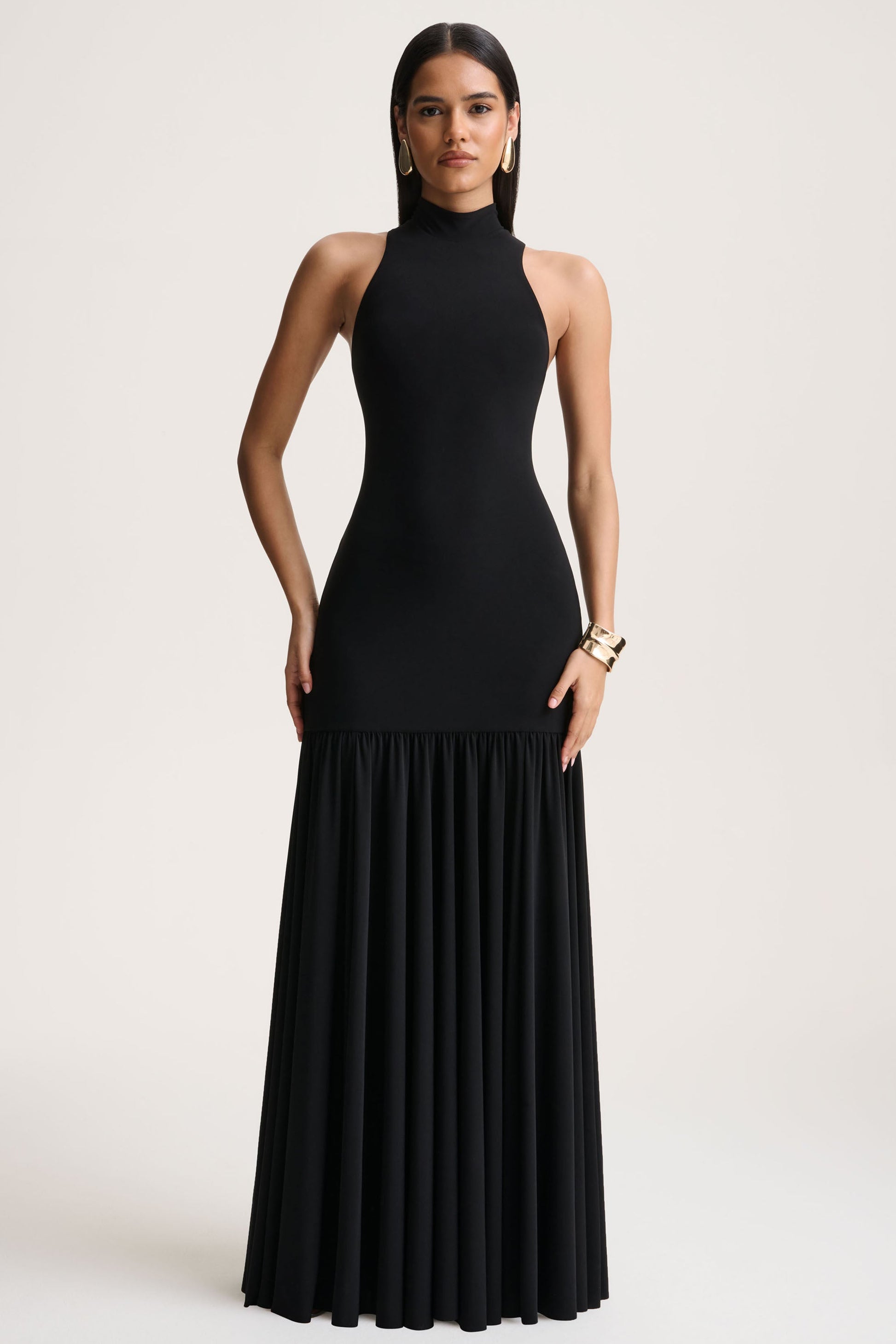 Tasmin | Black High-Neck Maxi Dress With Drop-Waist