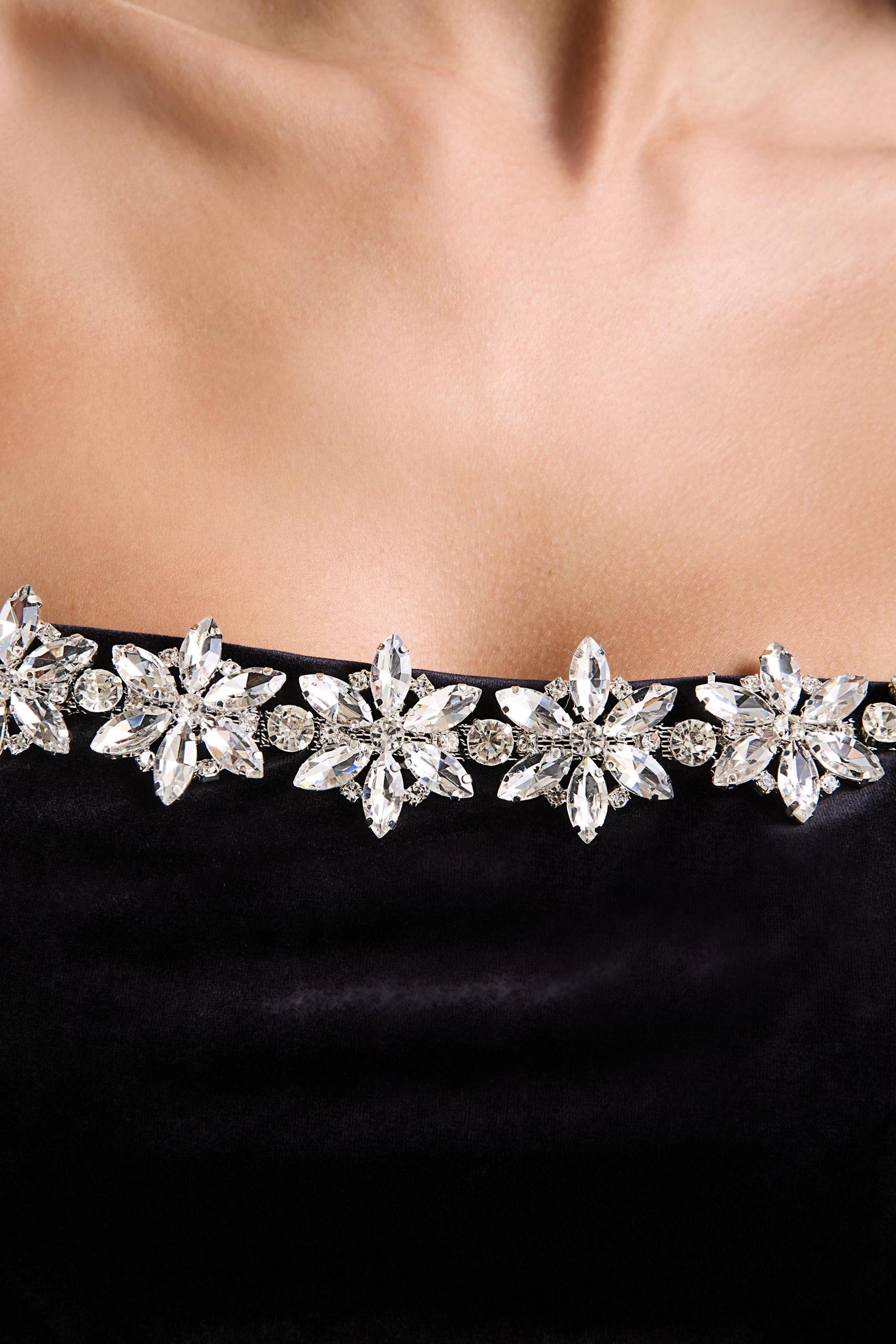Tazmin is the epitome of elegance with a touch of sparkle, perfect for elevating your evening wardrobe. Crafted from our premium velvet, this black top catches the light with delicate embellishments that add just the right amount of glamour. The structured square neckline highlights your collarbone, while the rich velvet fabric creates a luxurious feel. Ideal for pairing with tailored trousers or a sleek skirt.