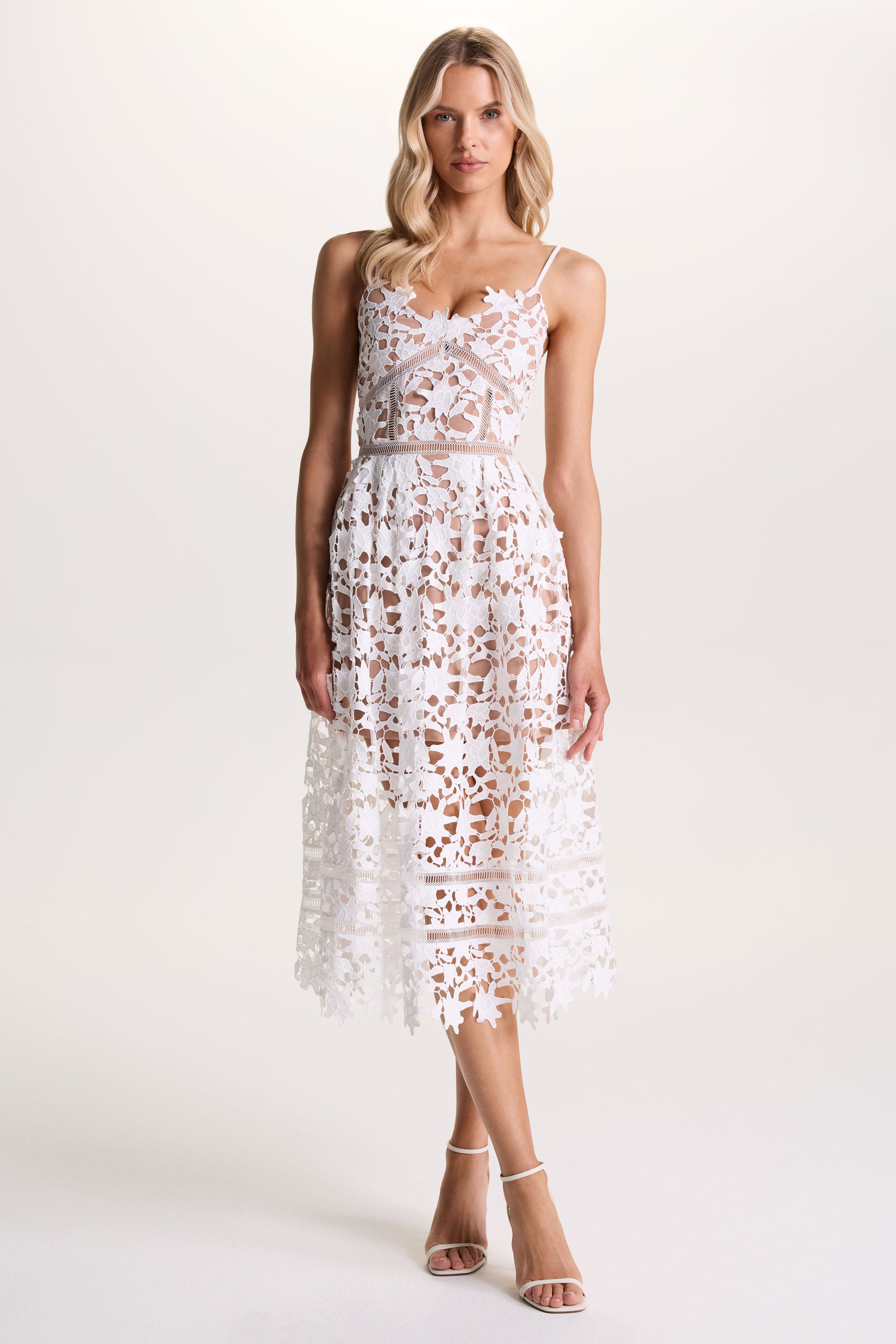 Zuri | White Lace Sweetheart Midi Dress With Cami Straps